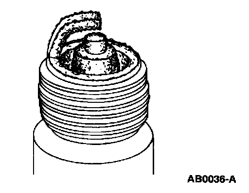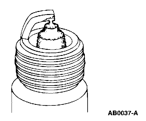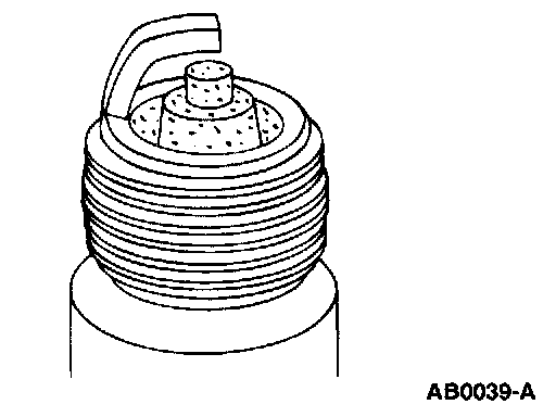 - Check for wet, black deposits on the insulator shell bore electrodes, caused by excessive oil entering the combustion chamber through worn rings and pistons, excessive valve-to-guide clearance or worn or loose bearings.