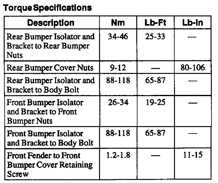 Torque Specifications: