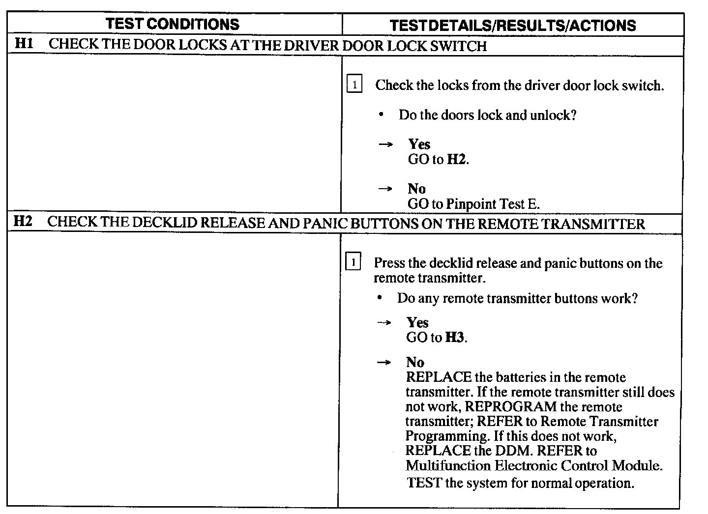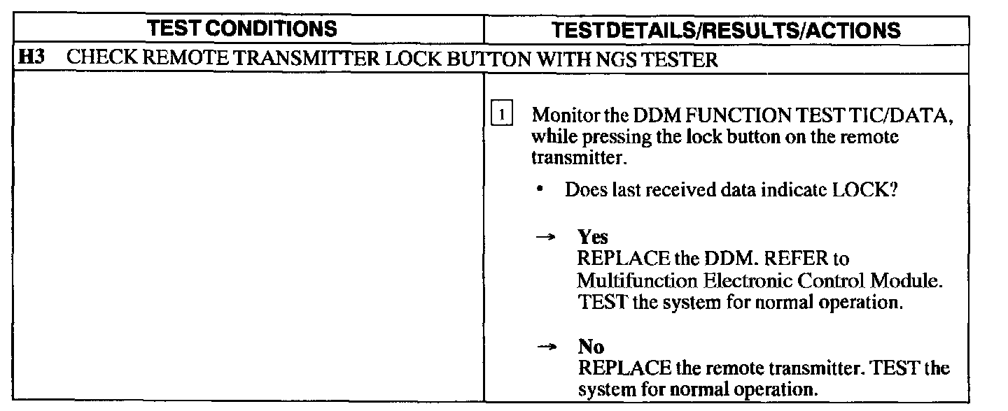 Test H: Doors Do Not Lock/Unlock Using the Remote Transmitter