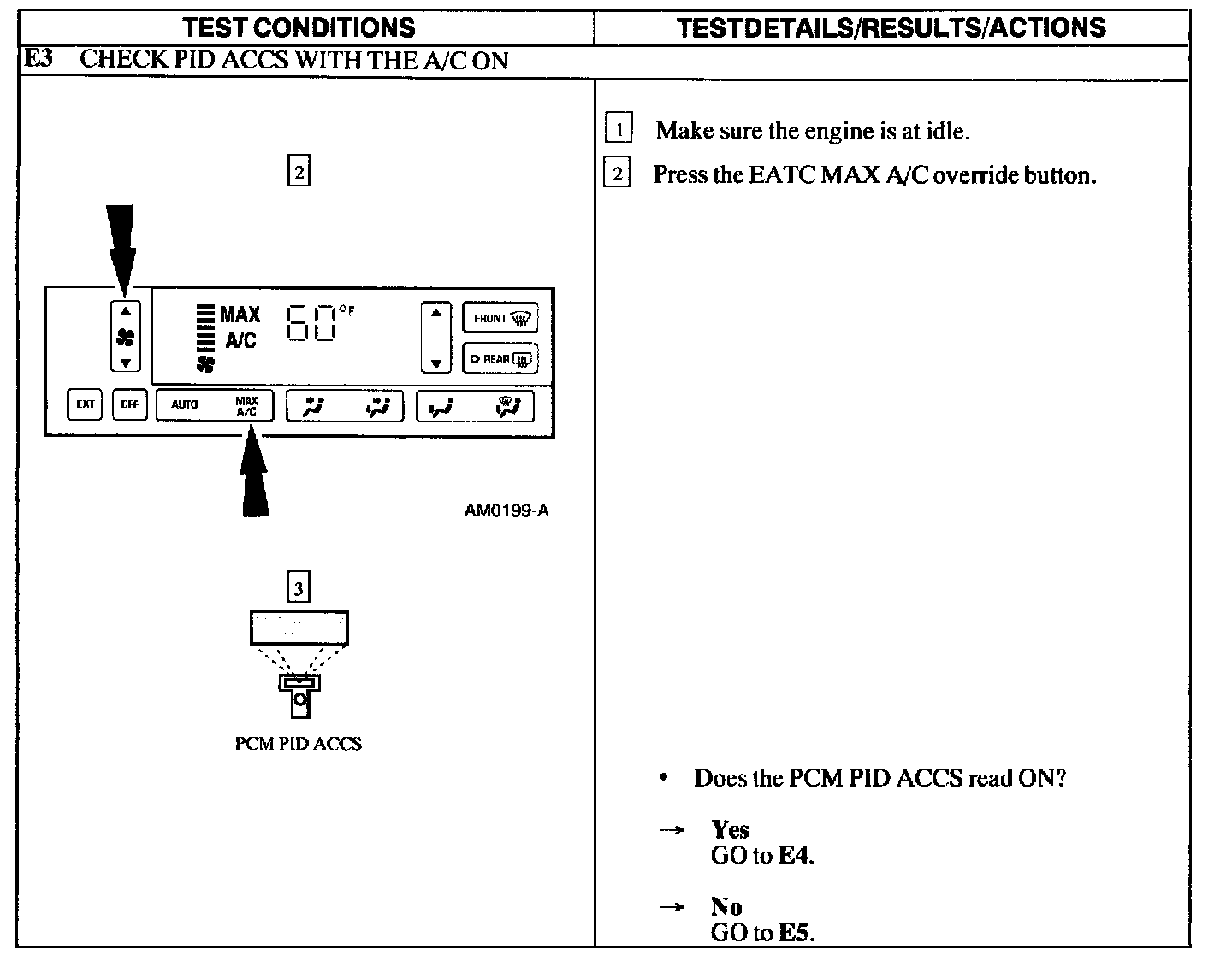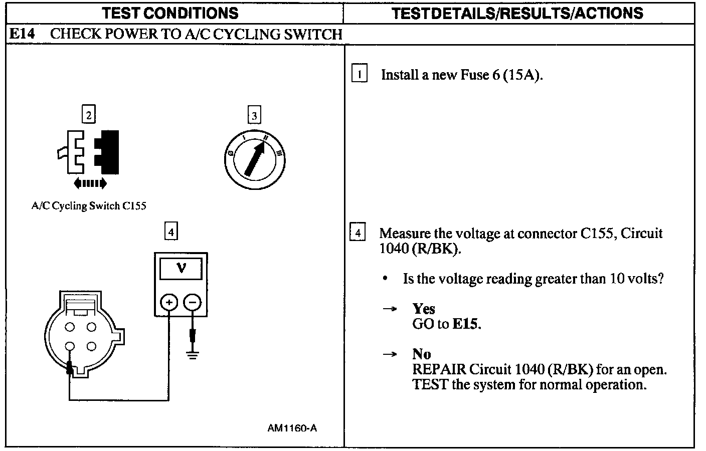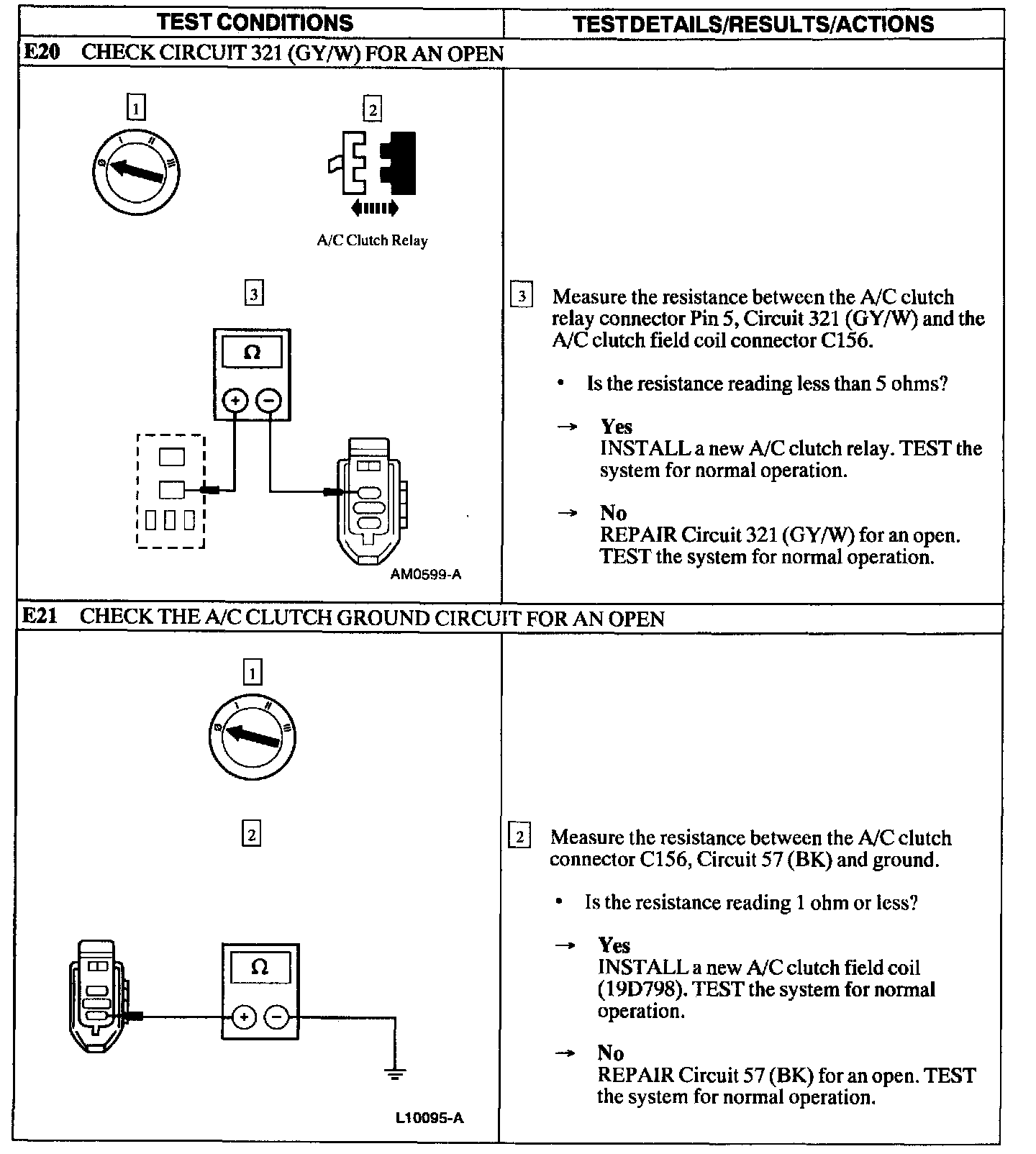 Test E: A/C Does Not Operate/Does Not Operate Correctly