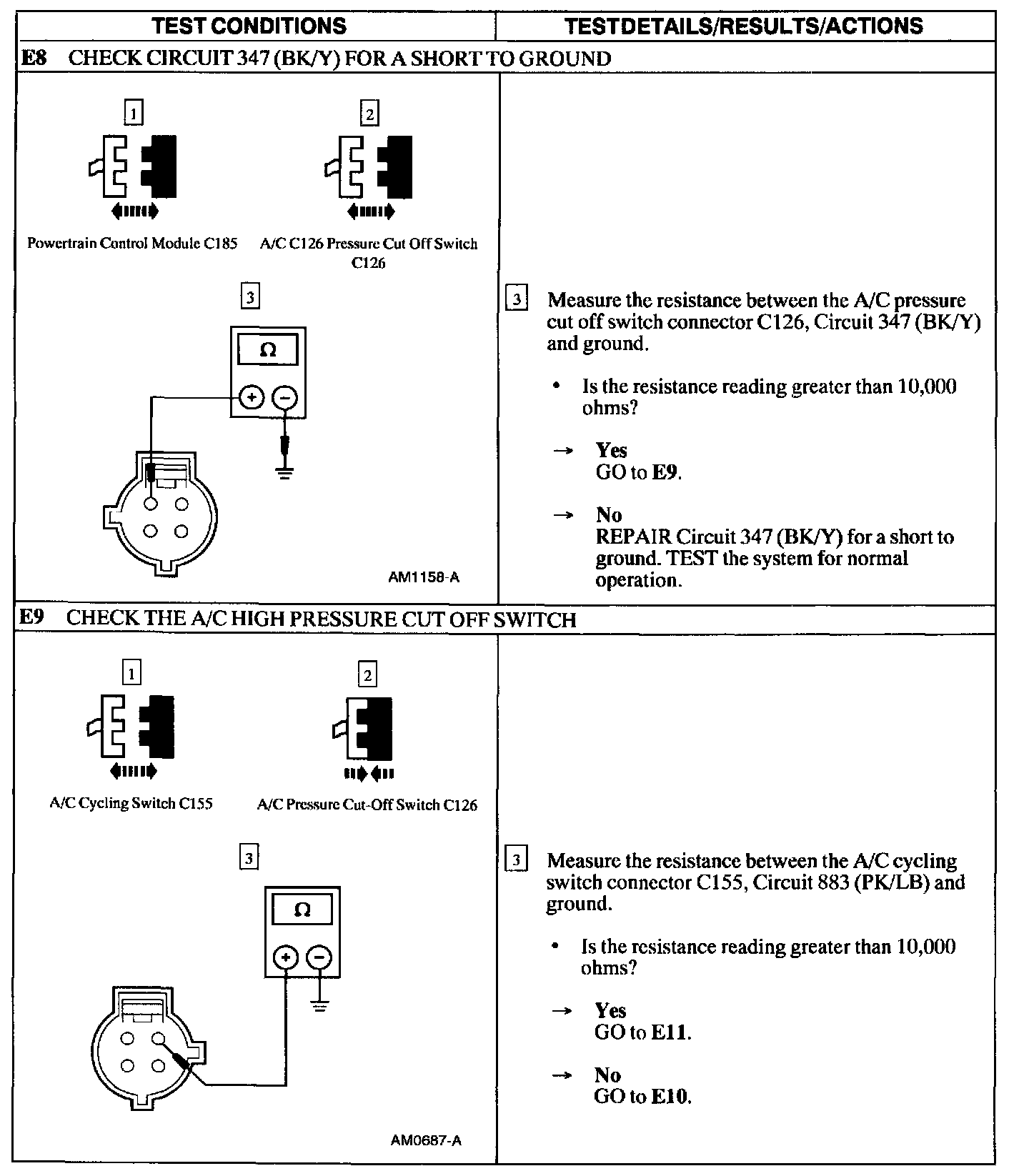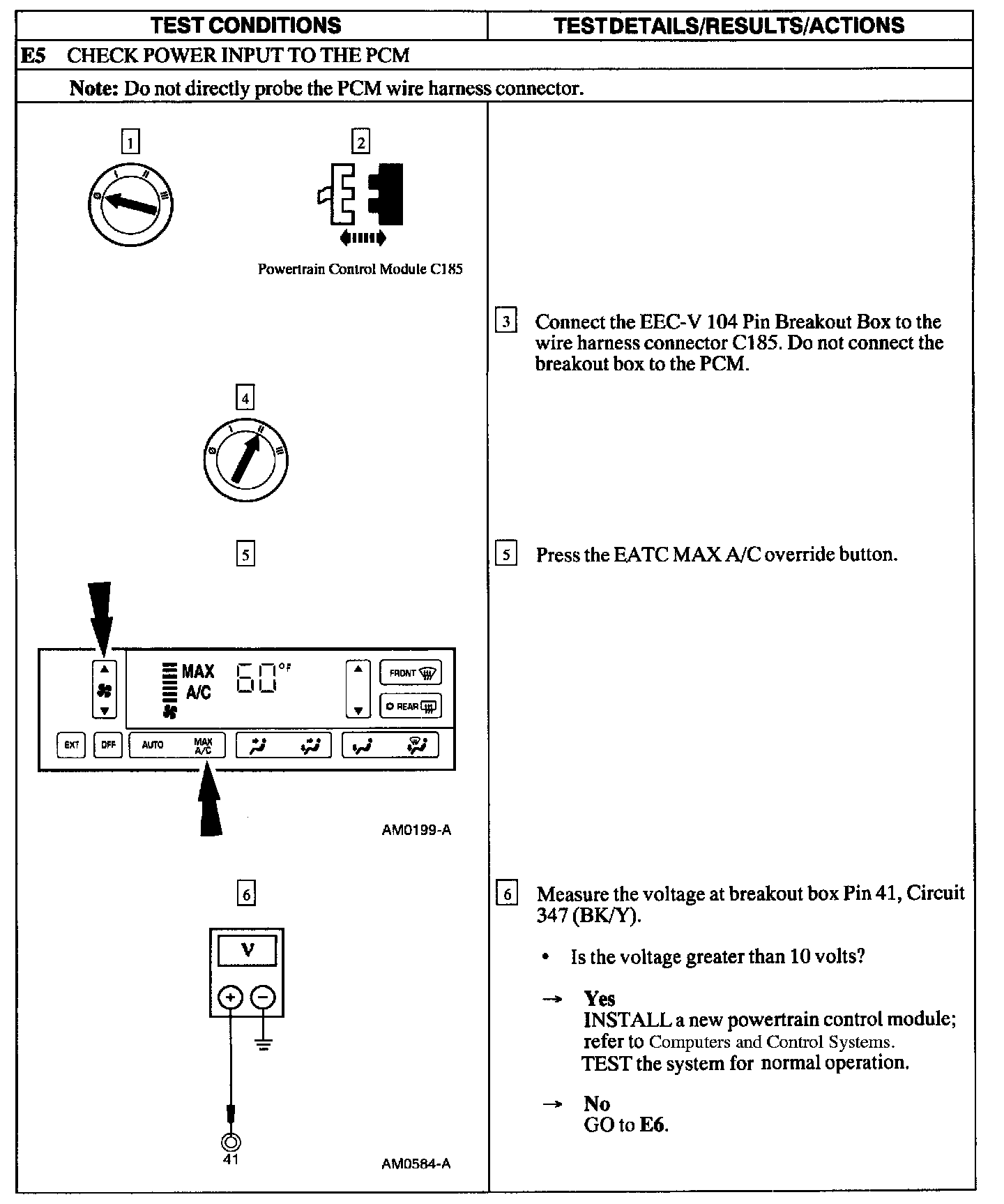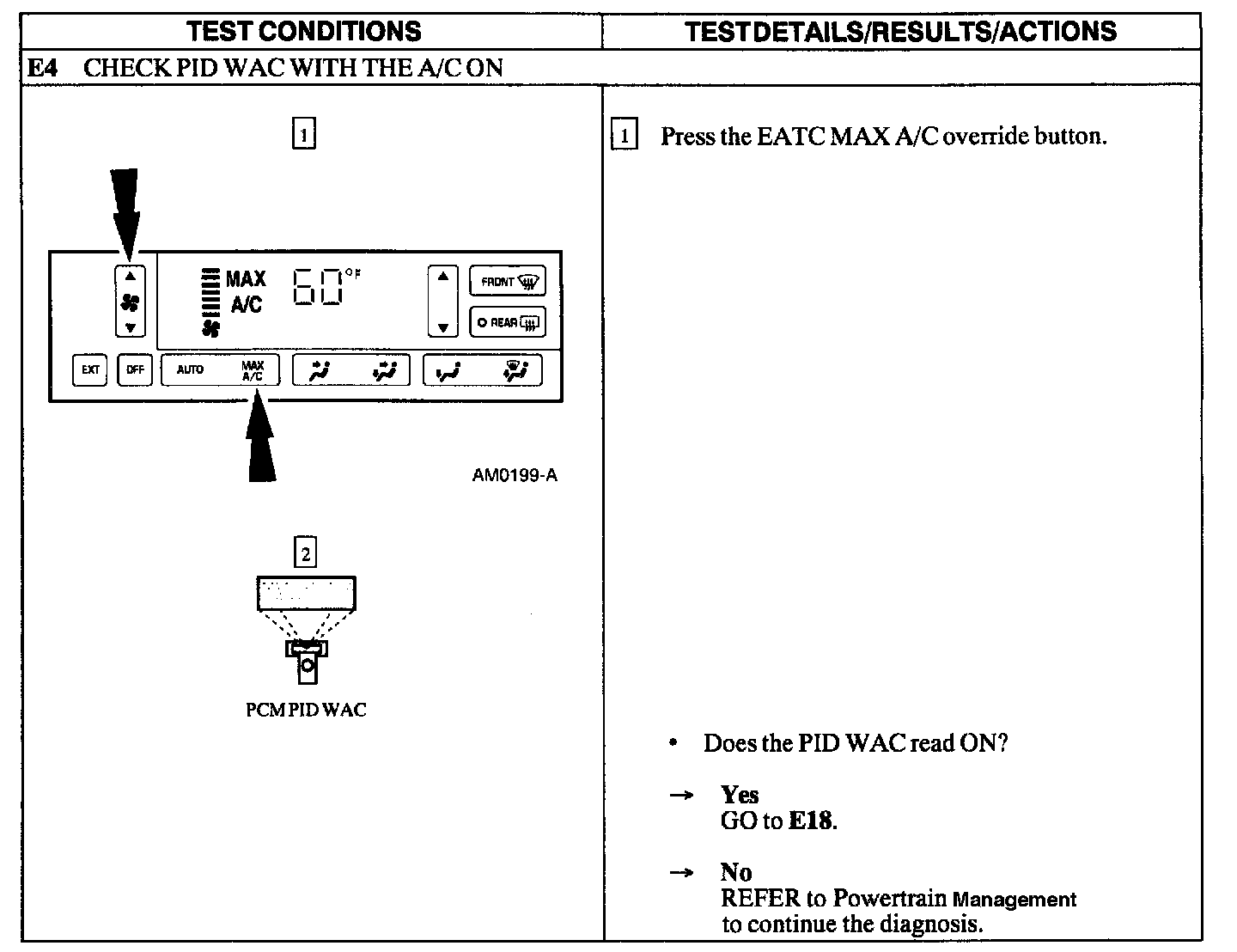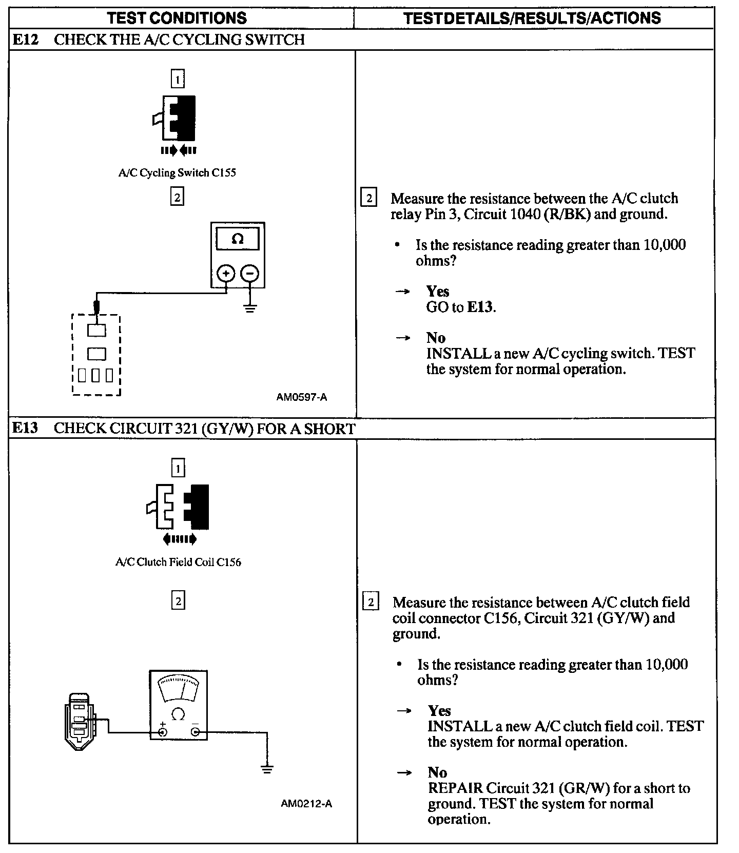 Test E: A/C Does Not Operate/Does Not Operate Correctly