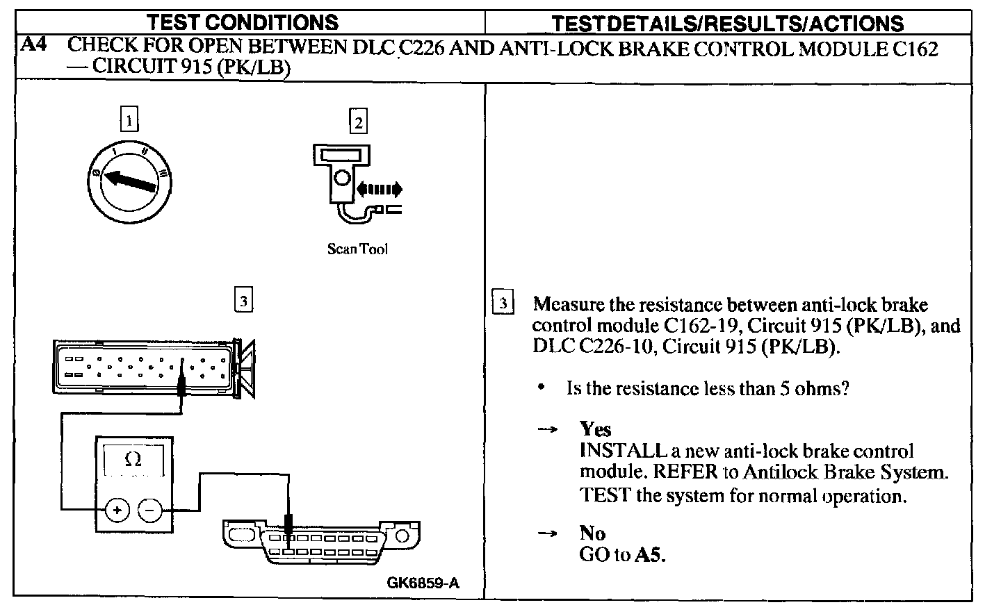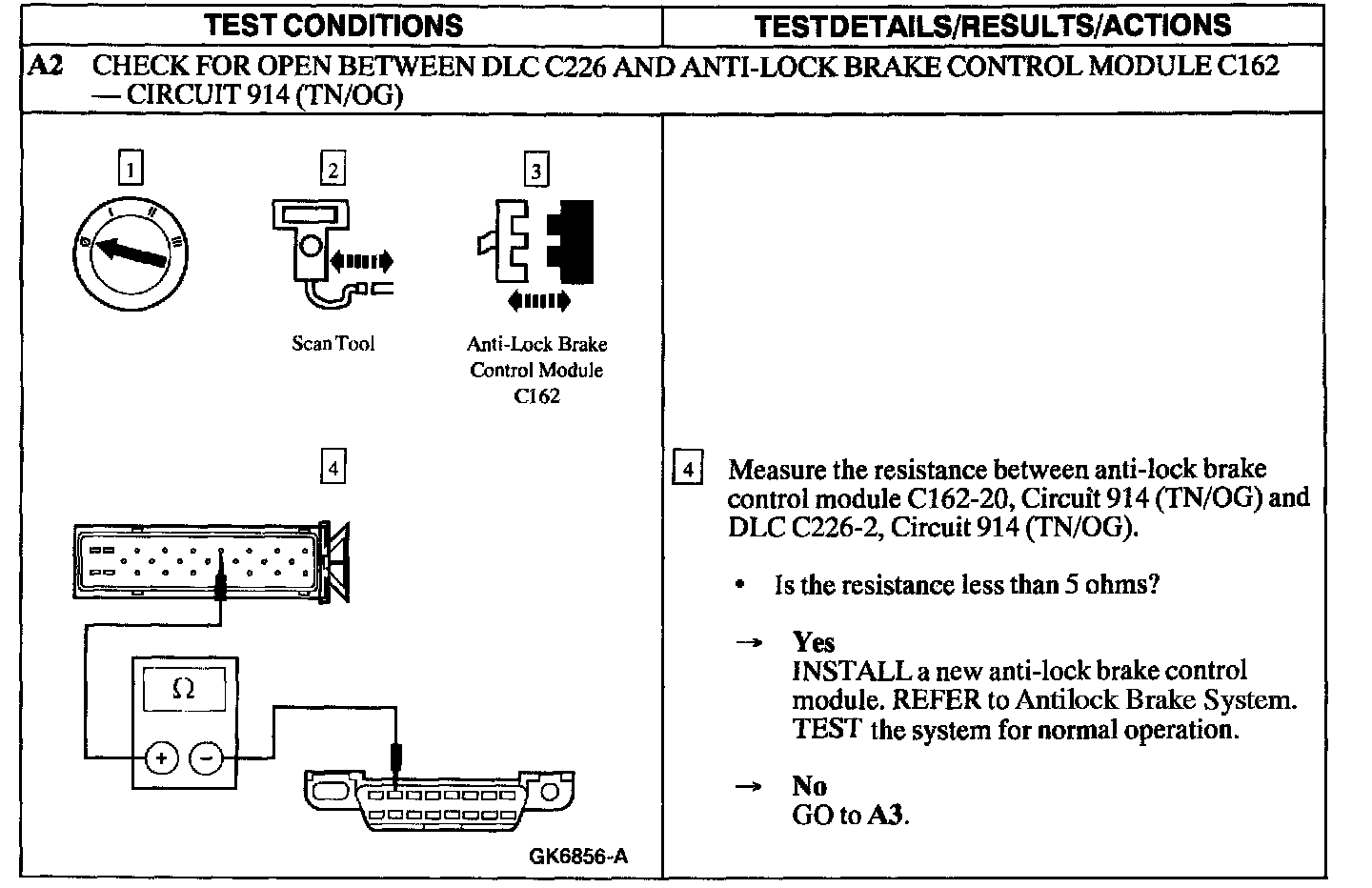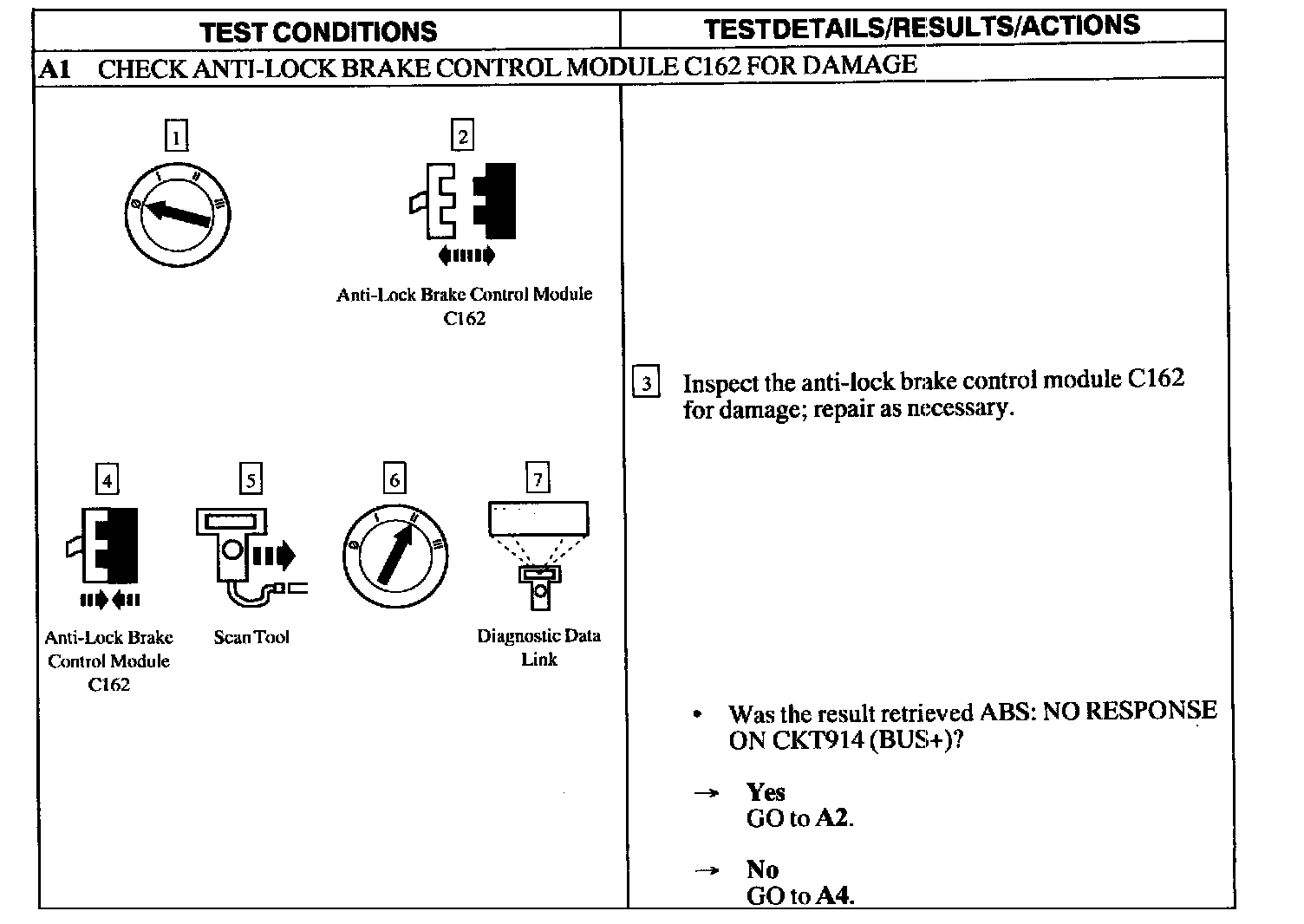 Test A: ABS Control Module Does Not Respond to the Scan Tool
