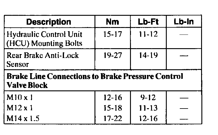 Torque Specifications