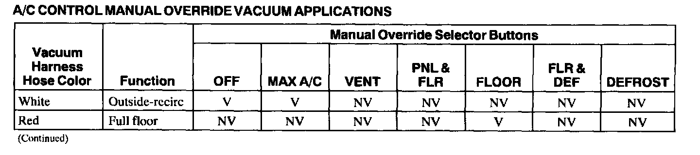 A/C Control Manual Override Vacuum Application, Part 2:
