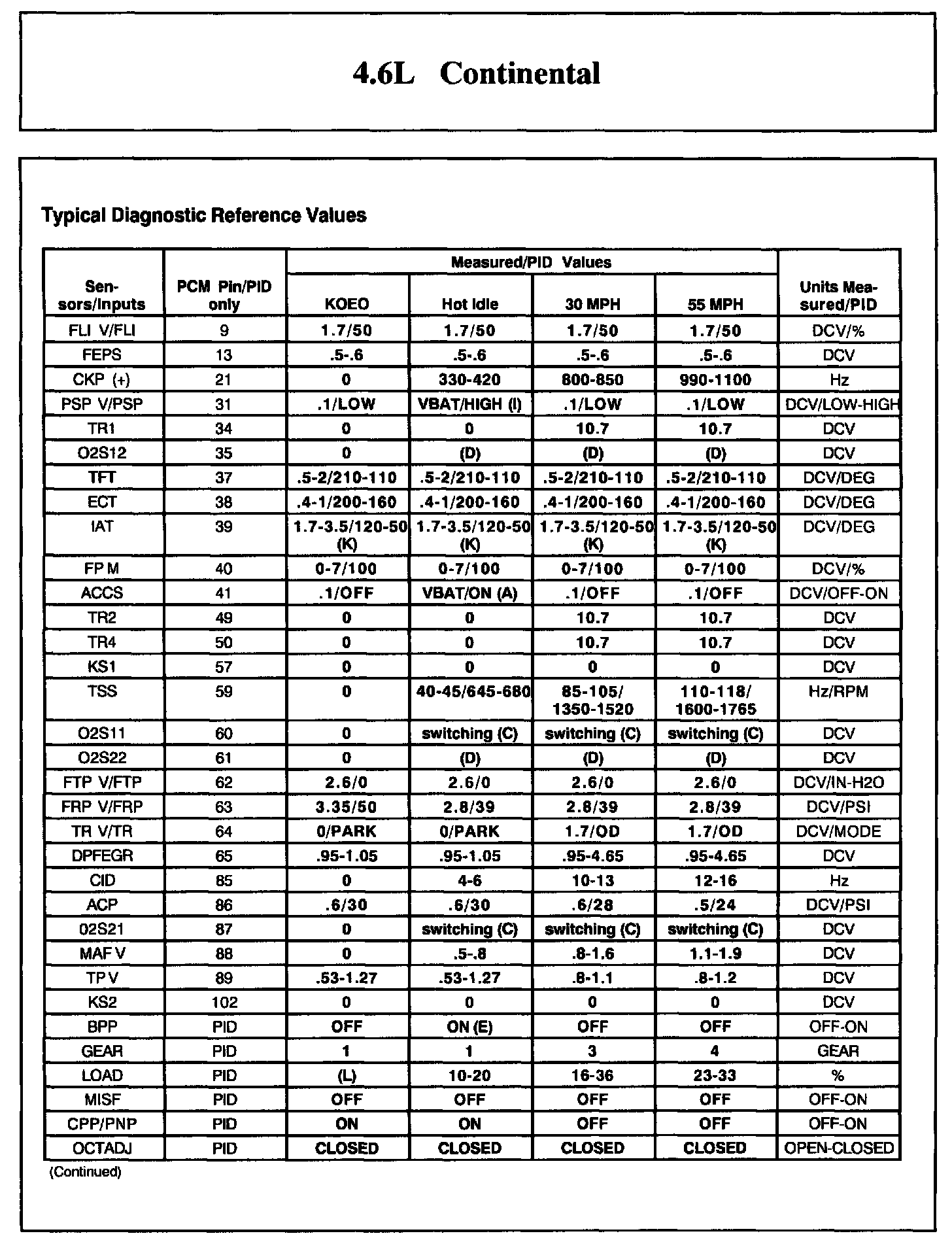 Continental V8-4.6L DOHC VIN V