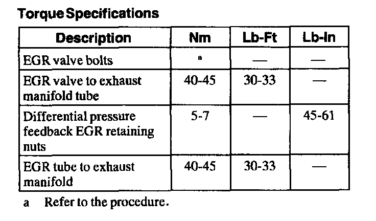 Torque Specifications: