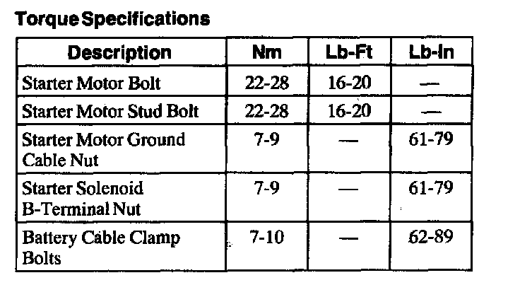 Torque Specifications:
