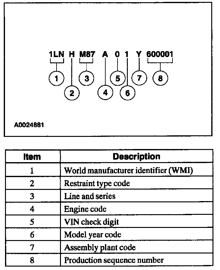 The last six VIN positions are the production sequence number. This set of numbers is also used as the vehicle serial and warranty number.