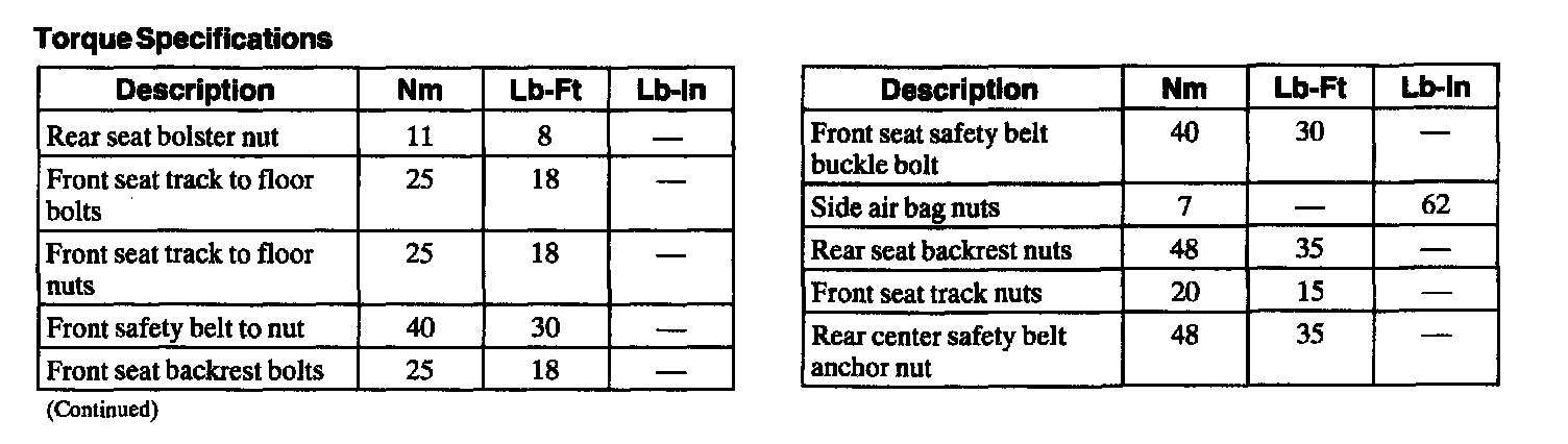 Torque Specifications: