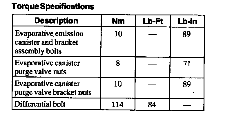Evaporative Emissions System: Specifications