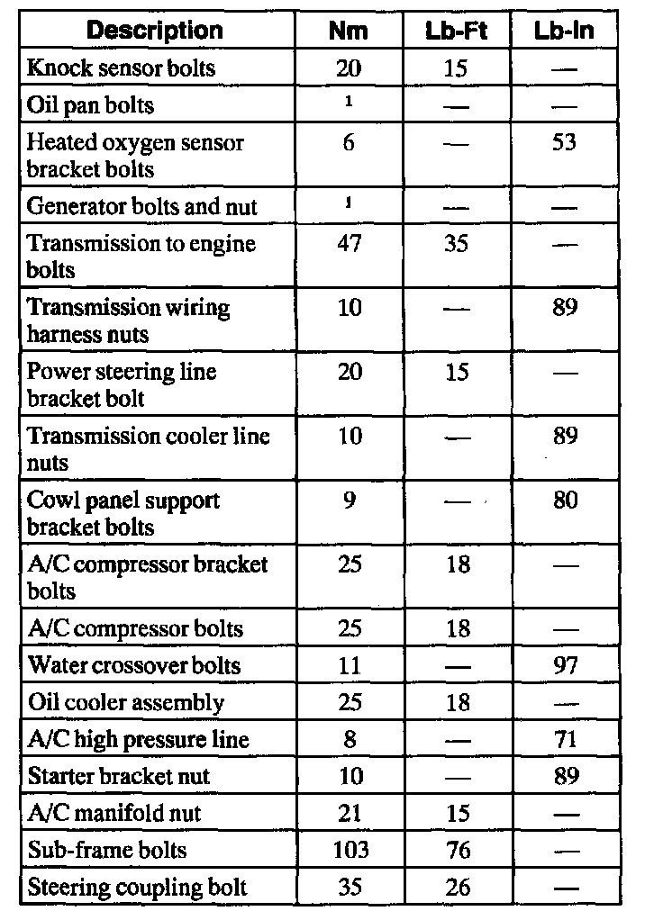 Torque Specifications