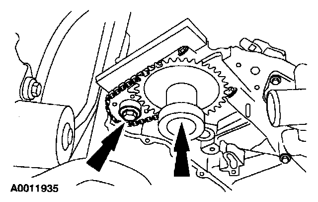 3. Remove the intake sprocket bolt and remove the camshaft damper.