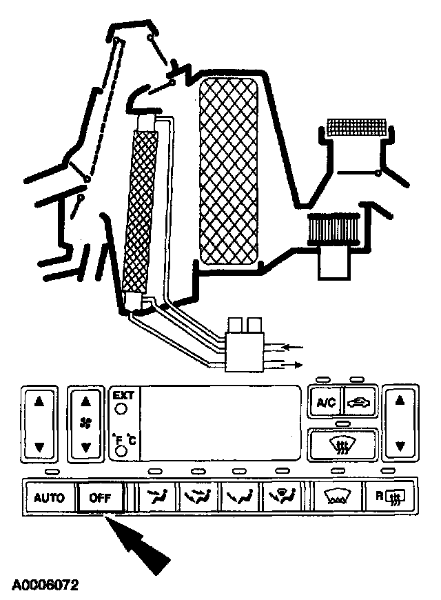 - The coolant control valve closes to shut off flow to the heater core.