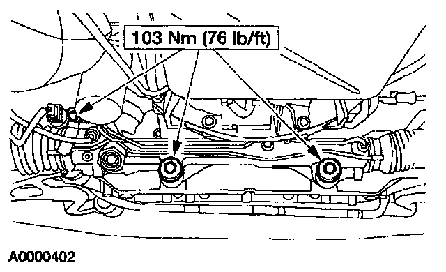 ^ The cam must be seated in the groove in the No. 2 crossmember.