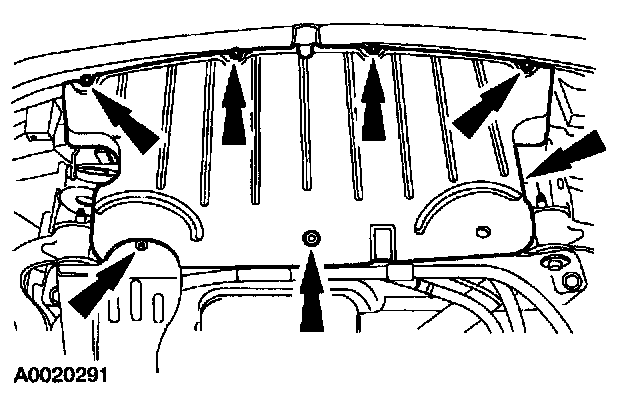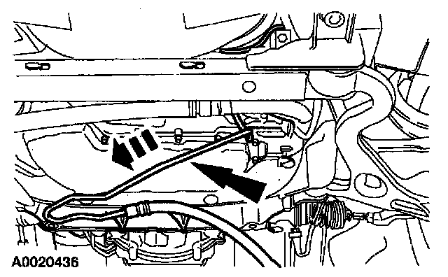 8. Pull the hose rearward between the oil pan and the radiator support crossmember.