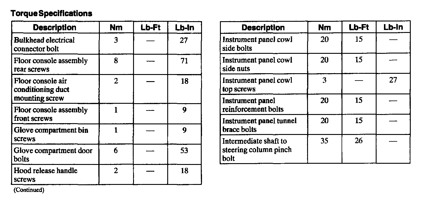 Torque Specifications: