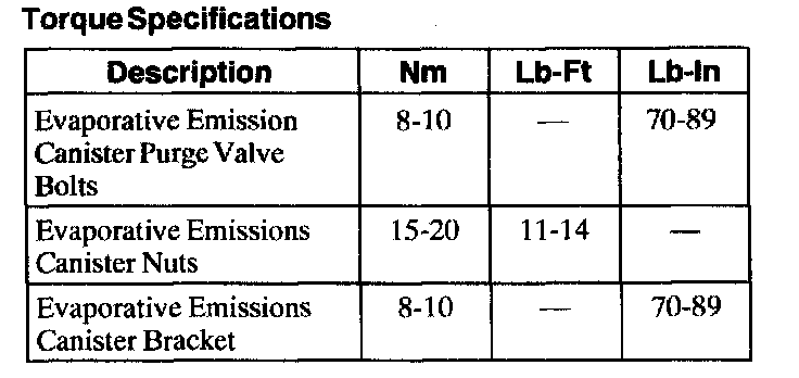 Evaporative Emissions System: Specifications