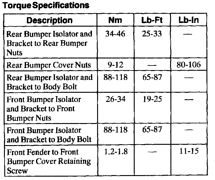 Torque Specifications: