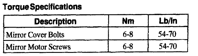 Torque Specifications: