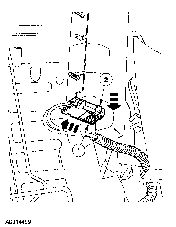 1 Slide the side air bag electrical connector locking clip to disengage it.