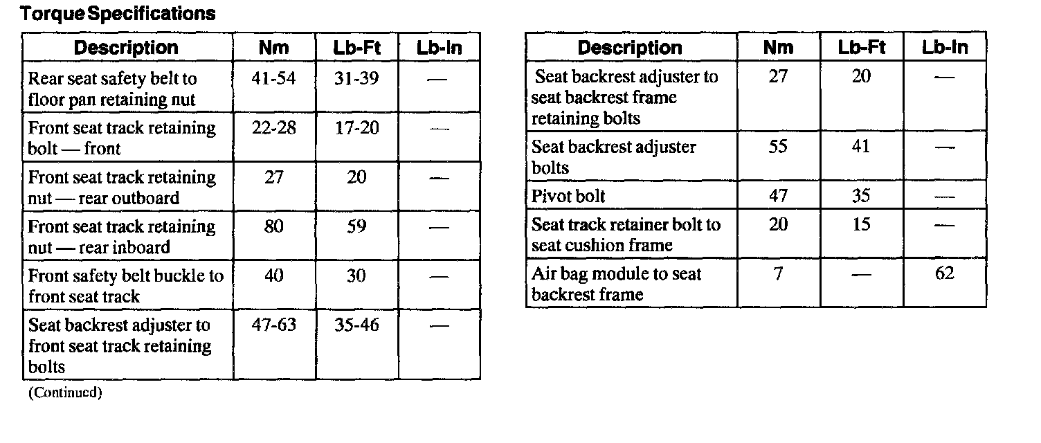 Torque Specifications: