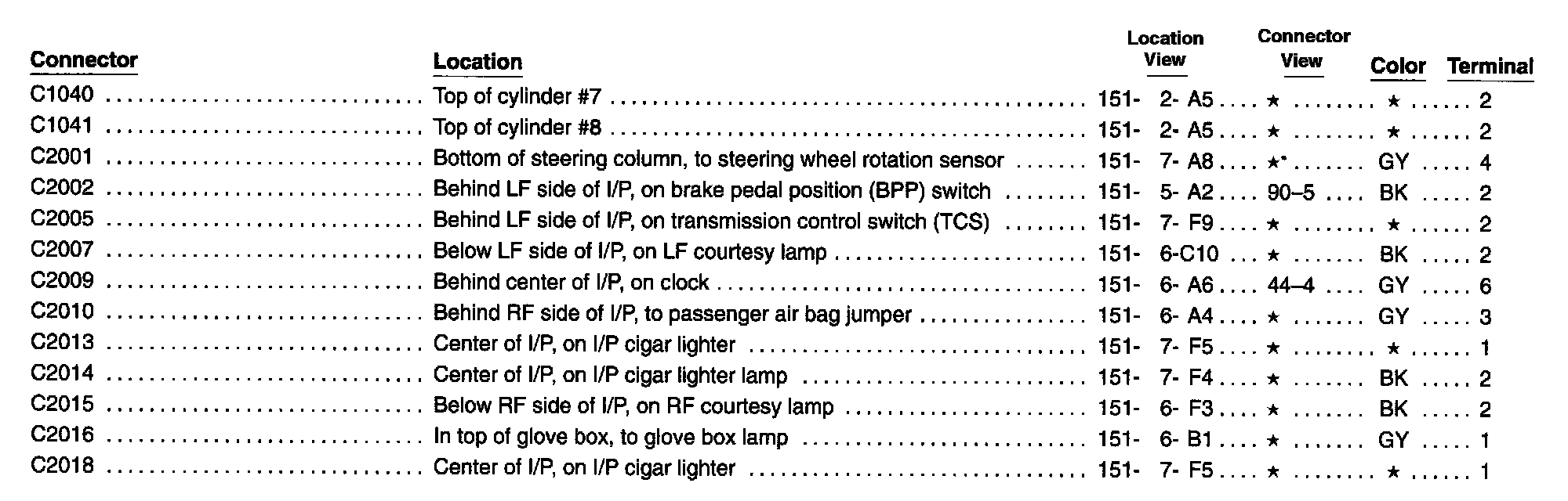 Connector Locations