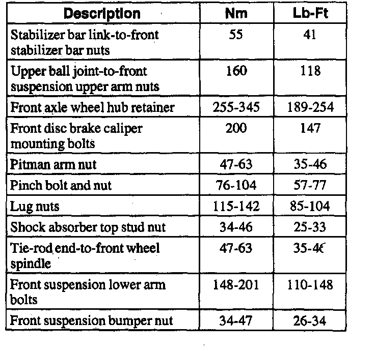 Torque Specifications