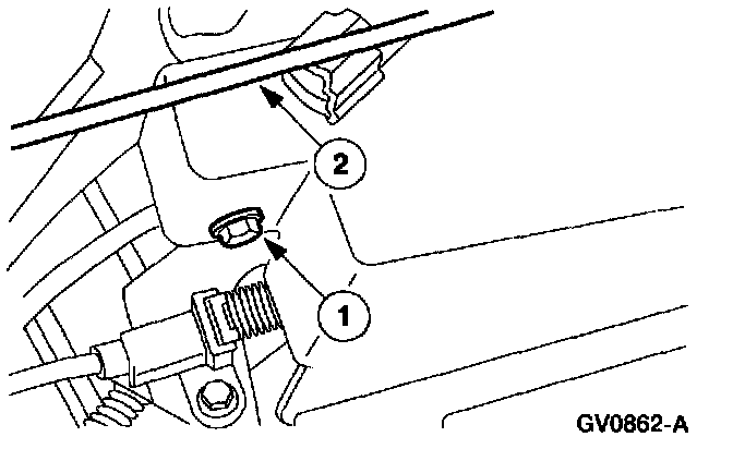 1 Remove the bolt from the front face of the accelerator control splash shield.