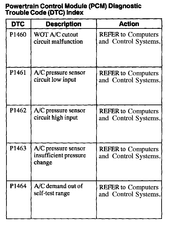Powertrain Control Module Diagnostic Trouble Code (DTC) Index