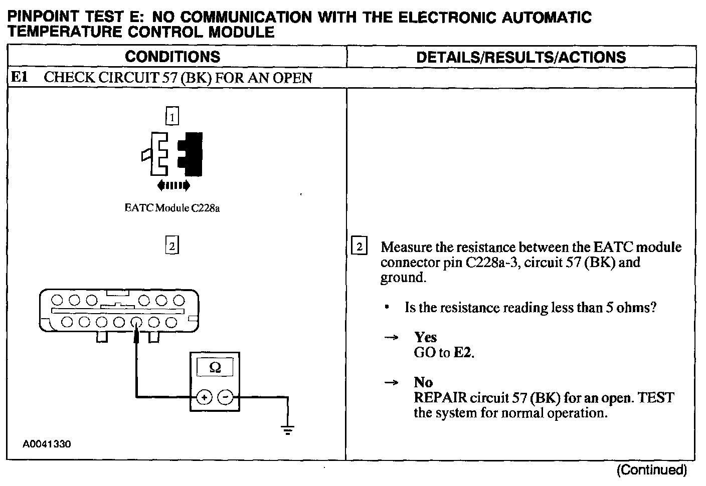 Test E: No Comm. From Elec. Automatic Temp. Control Module
