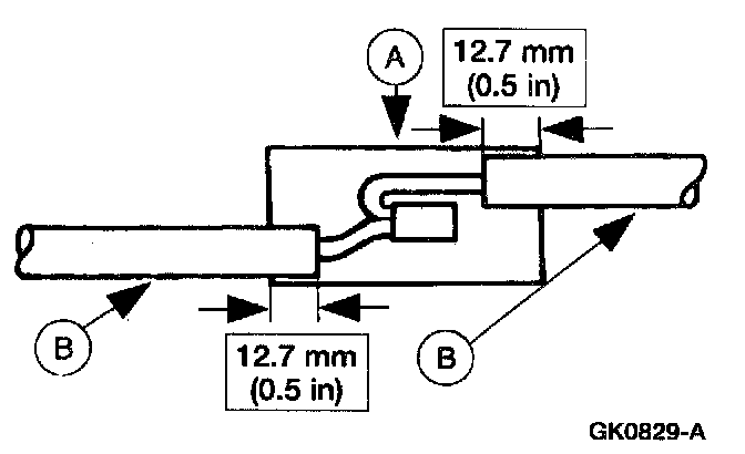 5. Position the (A) heat shrink tube over the (B) wire repair.