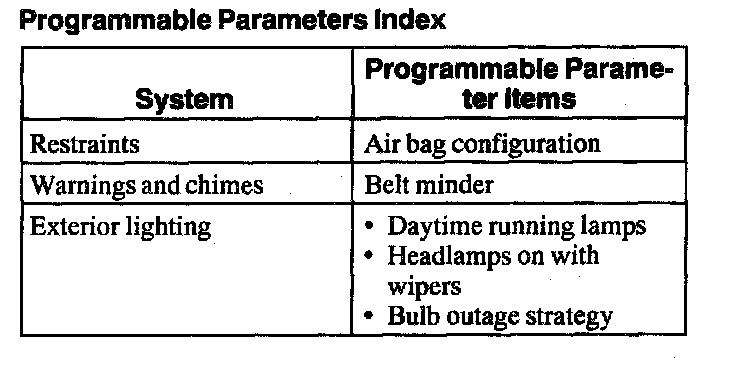 Programmable Parameters Index: