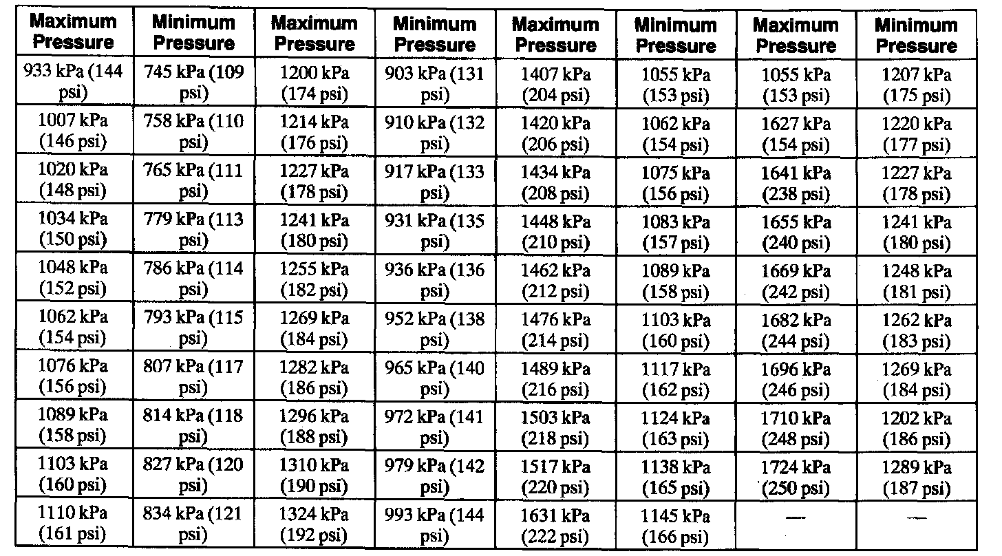 The indicated compression pressures are considered within specification if the lowest reading cylinder is within 75 percent of the highest reading. Refer to the Compression Pressure Limit Chart.