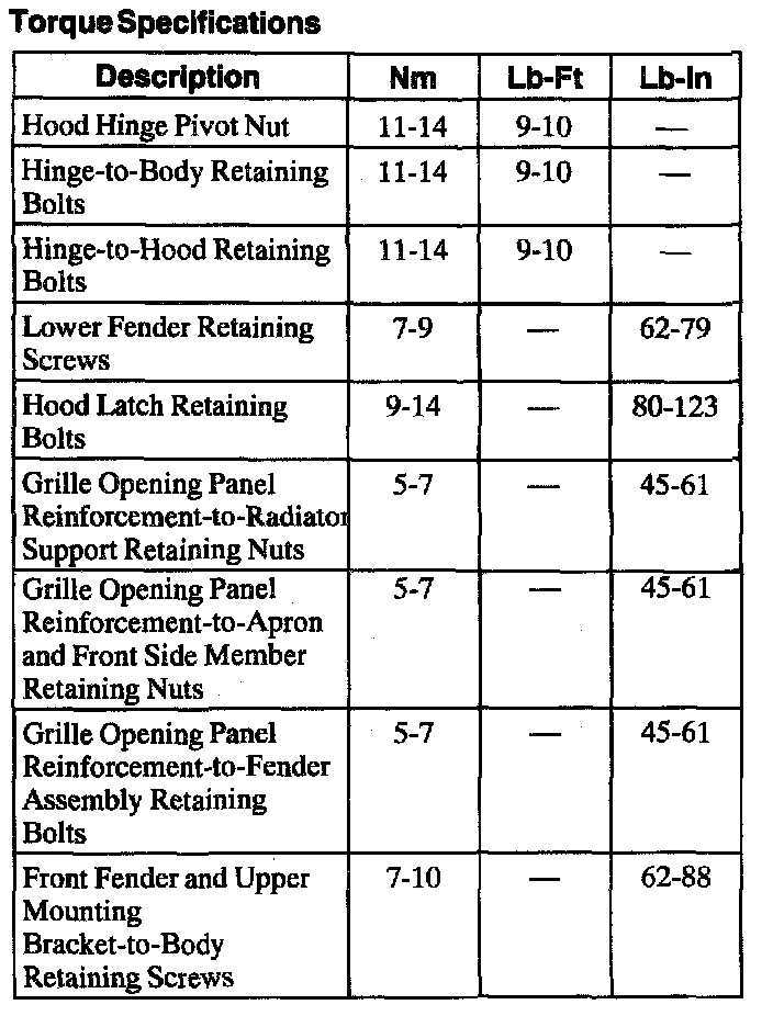 Torque Specifications: