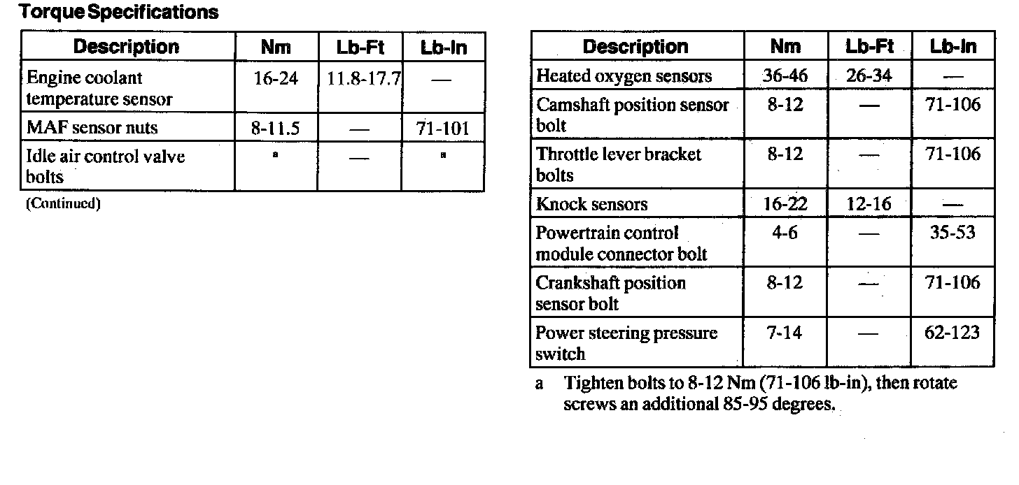 Torque Specifications:
