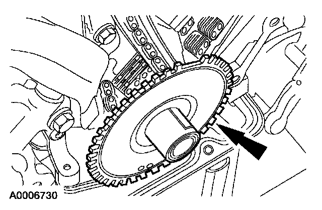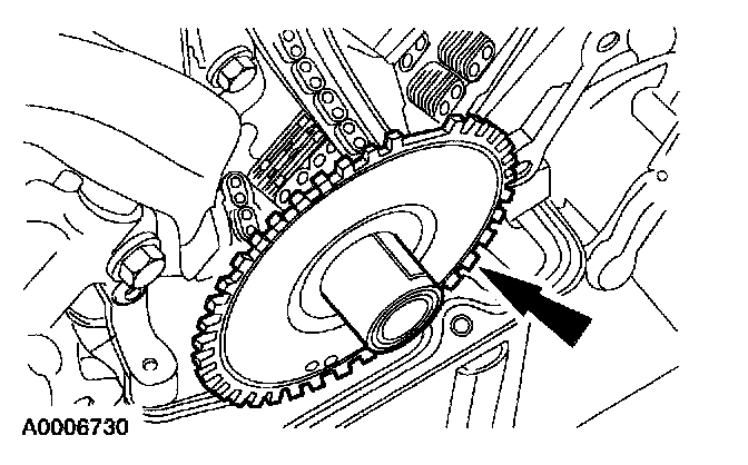 1. CAUTION:Rotating the crankshaft in a counterclockwise direction can cause engine damage. Crankshaft journals are directionally machined. Rotating the crankshaft counterclockwise can raise burrs on bearing surfaces, reducing engine life.