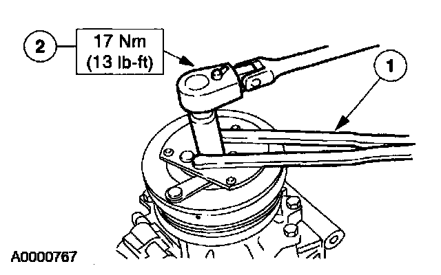 NOTE: The A/C clutch bearing and pulley is a slip fit on the compressor. If correctly aligned it should slip on easily. If difficulty is encountered, install using the special tool.
