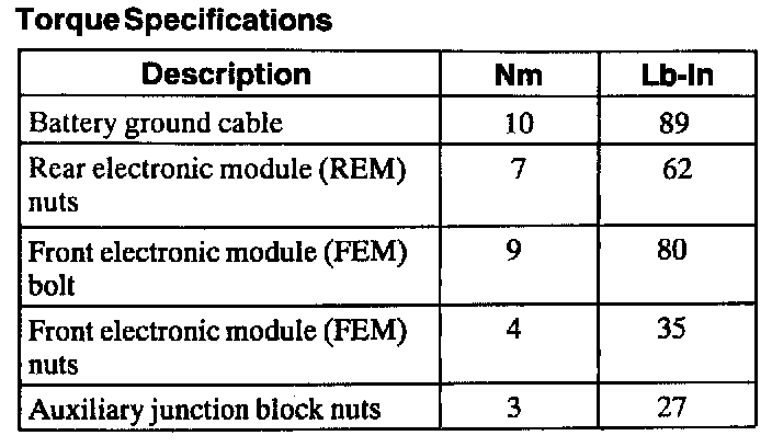 Torque Specifications: