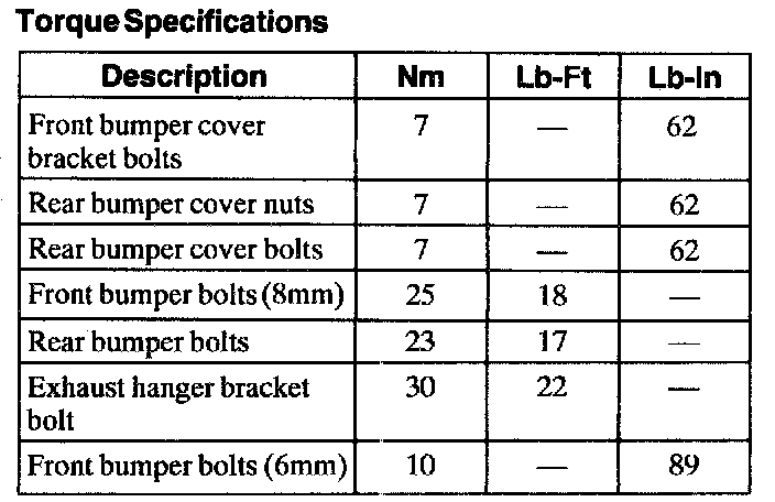 Torque Specifications:
