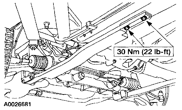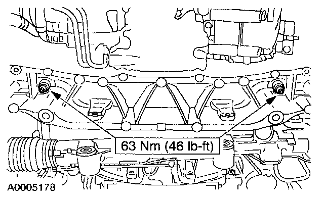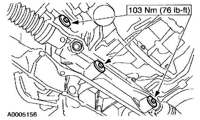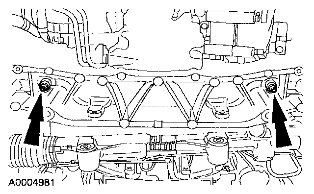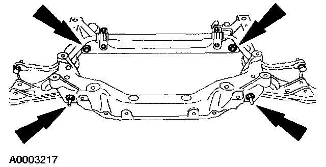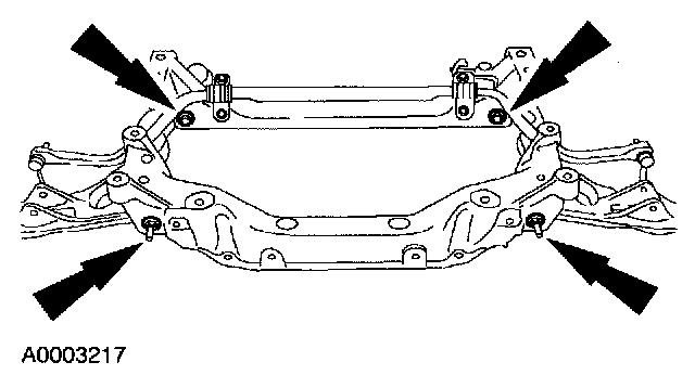 - Make sure the weight of the engine is not contacting the crossmember and make sure the crossmember assembly is in contact with the body before tightening the bolts.