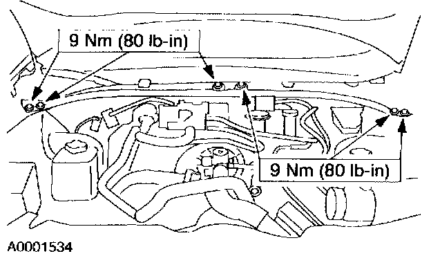 NOTE: Position the throttle body heater return hose out of the way before removing the intake manifold.