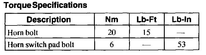 Torque Specifications: