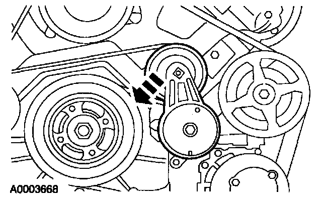 2. Rotate the tensioner counterclockwise and remove the drive belt from the pulley.