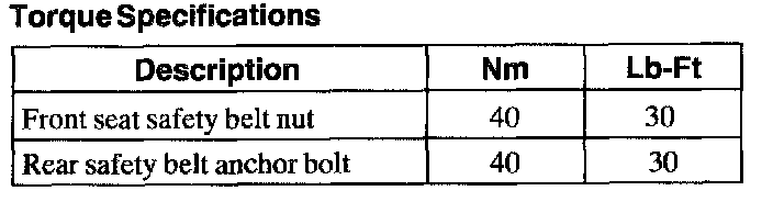 Torque Specifications: