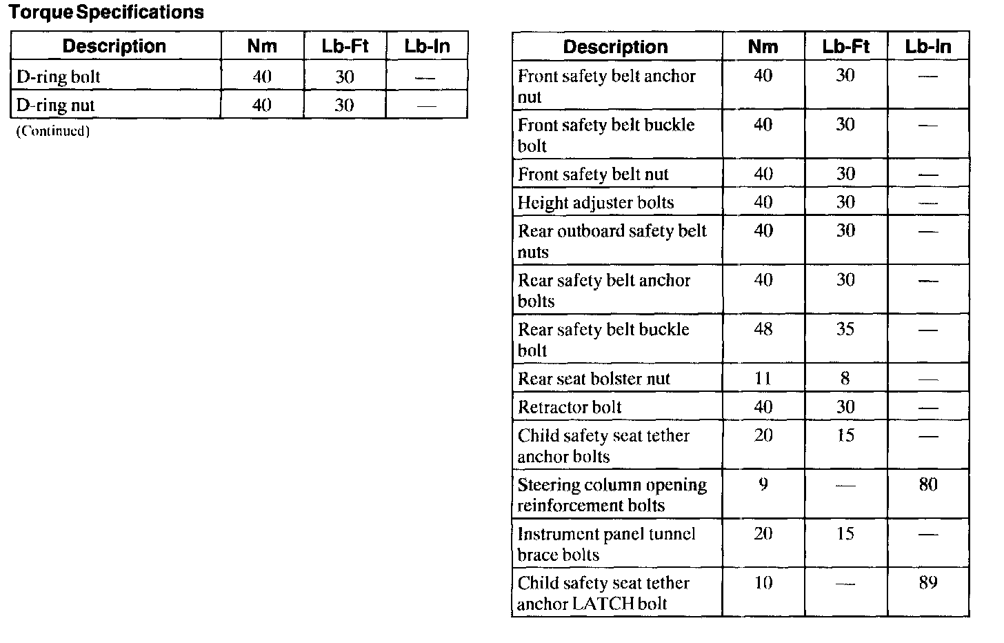 Torque Specifications: