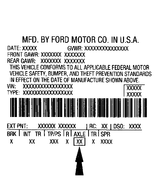 Vehicle Certification (VC) Label Example 1The Vehicle Certification (VC) label is located in the driver door jamb. The axle code is on the VC label.