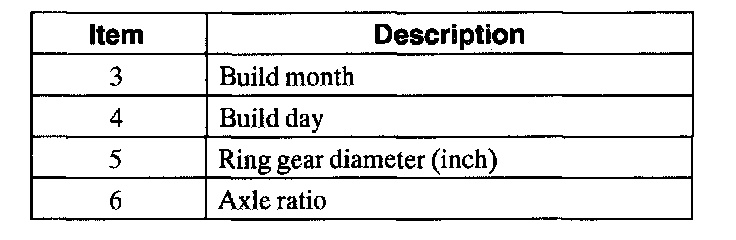 The plant code denotes a particular axle design and specific ratio. In addition, the plant code will not change as long as that particular axle assembly never undergoes an external design modification. If, however, an internal design modification takes place during the production life of the axle and that internal modification affects parts interchangeability, a dash and numerical suffix is added to the plant code. This means that, as an assembly, both axles are interchangeable; however, internally they are different. Therefore, each requires different internal parts at the time of repair.