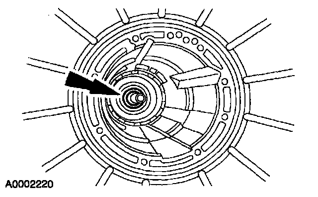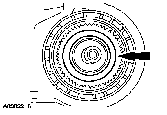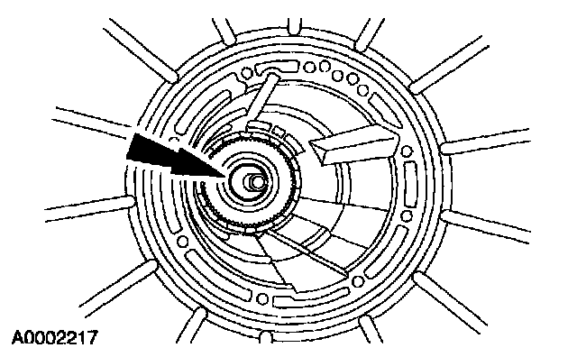 35. CAUTION: The low/reverse brake drum must be pulled forward to install the low/reverse planet retaining ring.