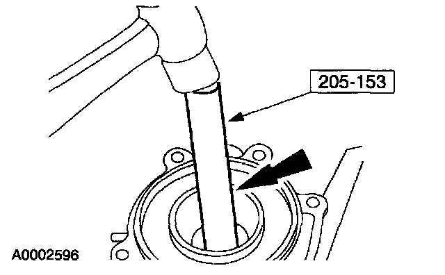 8. Using the special tool, tap case bearing into case bearing bore.