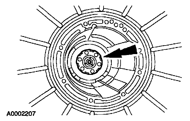 38. CAUTION: If new clutch plates are being used, they should be soaked in clean automatic transmission fluid 30 minutes prior to installation. The friction side of the plates must face down toward cylinder.